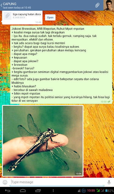 Eh lah kok ya WA dicaplok FB, karuan aja WA lovers buru-buru ganti channel ke produk starup lainnya. Mereka gak mau privasi di kolom chattingnya terusik. Beberapa aplikasi jadi sasaran pengganti WA. Di Jerman warga pribuminya pake Treema, di China ada Line, di Taiwan ada WC, di Indonesia? apa aja deh....